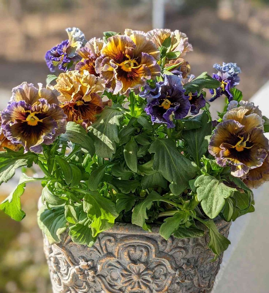 ローヴドゥアントワネットは好きなパンジーですが中でも試験販売のクレールドゥリュンヌは少しお花は小さめですが独特な色合いで目が離せません✨😉❣️
