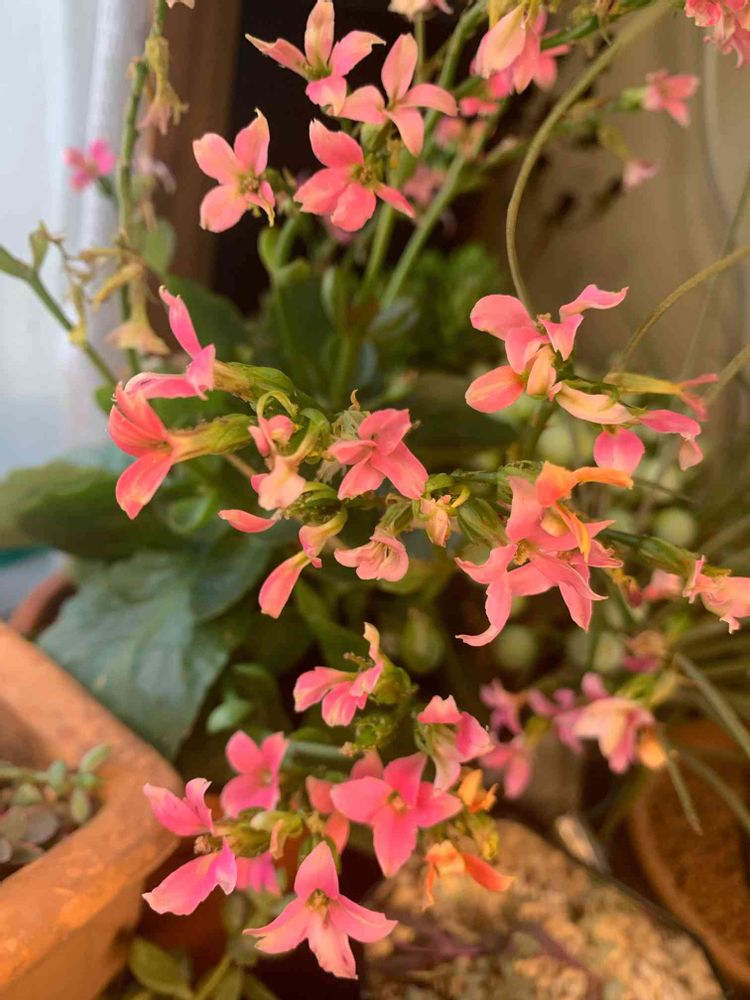 窓辺で お世話もしないのに 小さな鉢で11月から4ヶ月間ずーっと咲いています💖