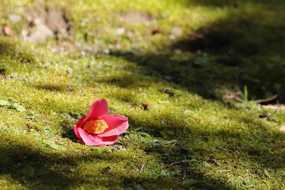 緑の苔の上に落ちた赤い椿。なかなか風情がありますよ(^_^)v