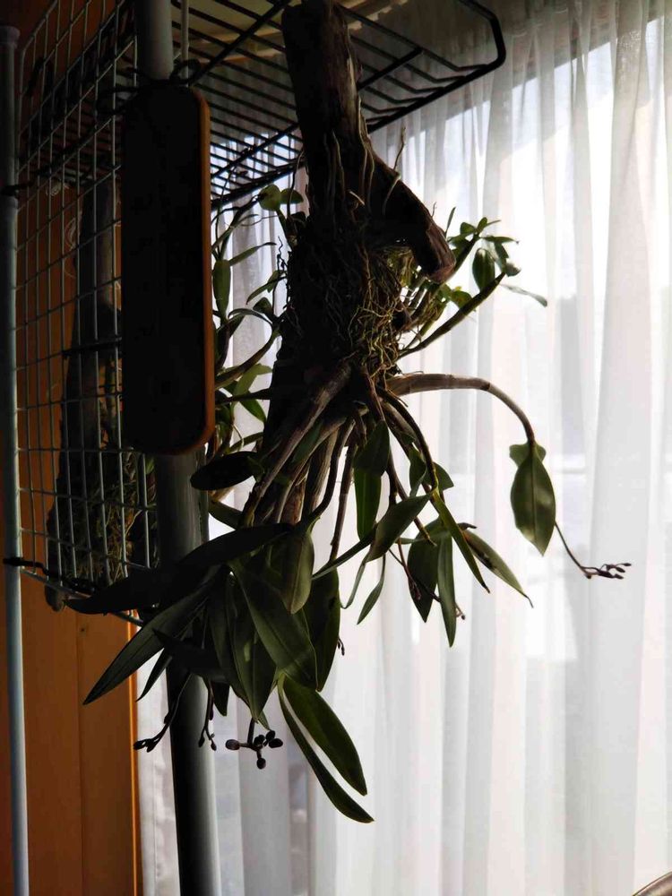 太陽が雪に反射して開けられない窓、カーテン開けると👀紫外線等眩しい😣と、お❗️たんまりの雪⛄️、これ😃流木キンギアナム(ベリー・オダ)です😄根が伸びすぎ、フック逆に付けました。花芽紅くなり始めました。息子出窓に吊り下げ15℃ 初心者の私に持ってこいでしたが、ベランダに置き忘れた二鉢、凍えちゃった🥶