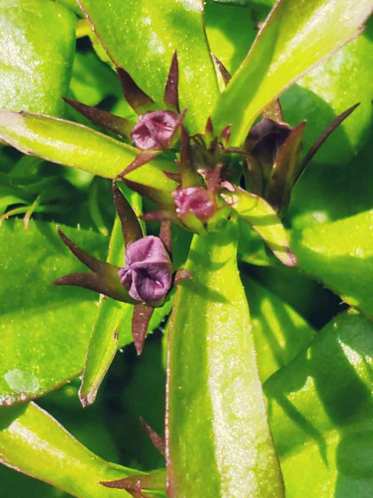 無事冬越しできたロベリア鉢で蕾を発見。萎れた巾着袋のような不思議な形