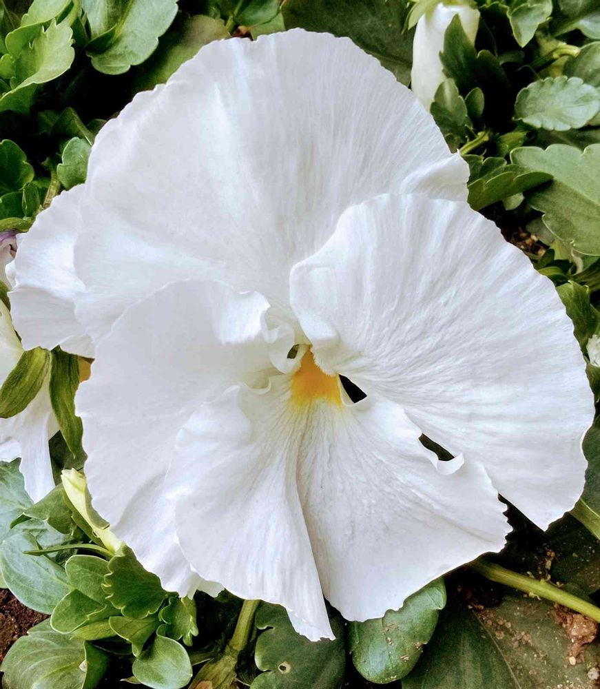 通りすがりの花壇で、白いパンジーを見かけました☺️