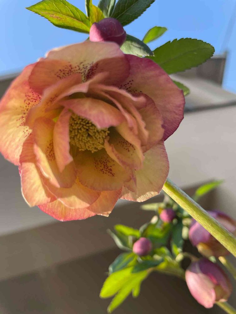 玄関の門の上に鉢を置いて写真撮ったら上手く撮れることに気づきました👍