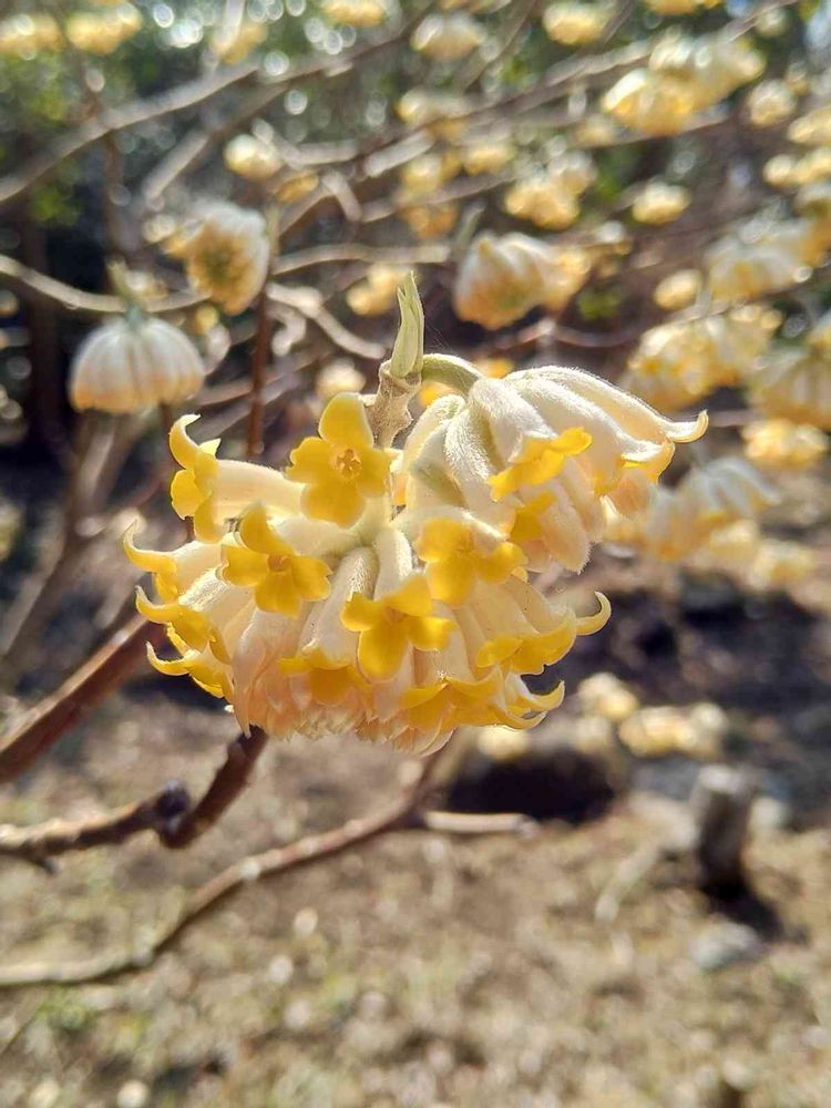 名前がミツマタなのに、花は十何マタみたいになってますね。😄