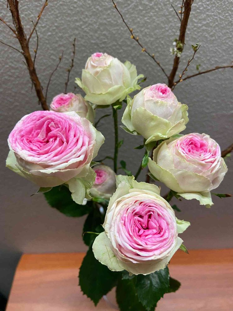 ミミエデンにも普通系とつる系があります。私はつる系のツルを伸ばさずに鉢植えしてます。沢山咲くとブーケのようになります。