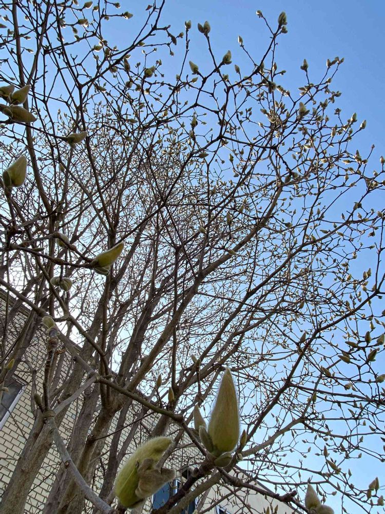 調べてみると、ハクモクレンは樹高が20mにもなる高木で単幹で幹が太くなりますが、モクレンは4〜5mほどの中高木で株立ちになりやすいそうです。
