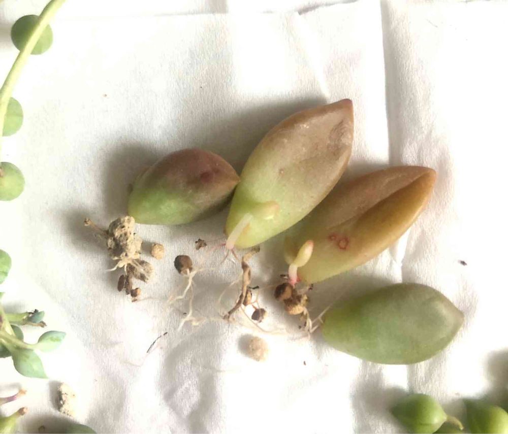 多肉を植え替えてたら、前にポロッと取れたのを適当に挿しておいたのから根と新芽が出てました。