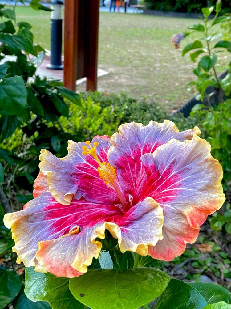 昼間の公園で大きなハイビスカス発見👀