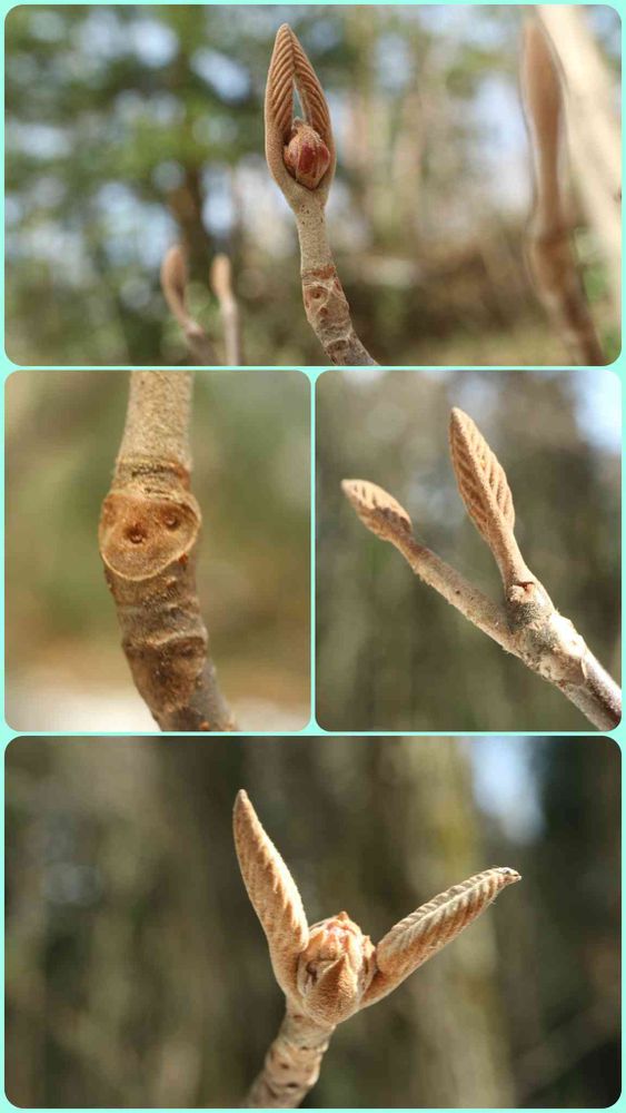 『冬芽、早い時期に芽鱗が落ちて裸芽になる。葉痕は半円形~心形~三角形、維管束痕は3個』