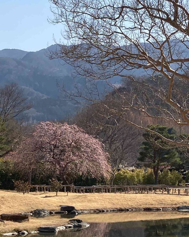 おはようございます🌿枝垂れ梅の下は、牡丹の囲いだと思います🤗