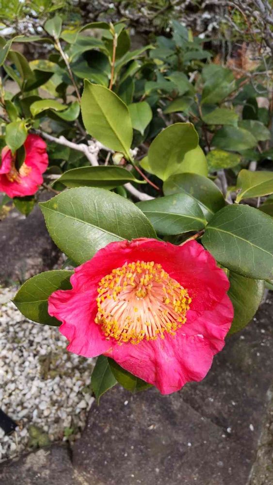 この大きな肥後椿、我が家ではすごい存在感です。🌺🌿