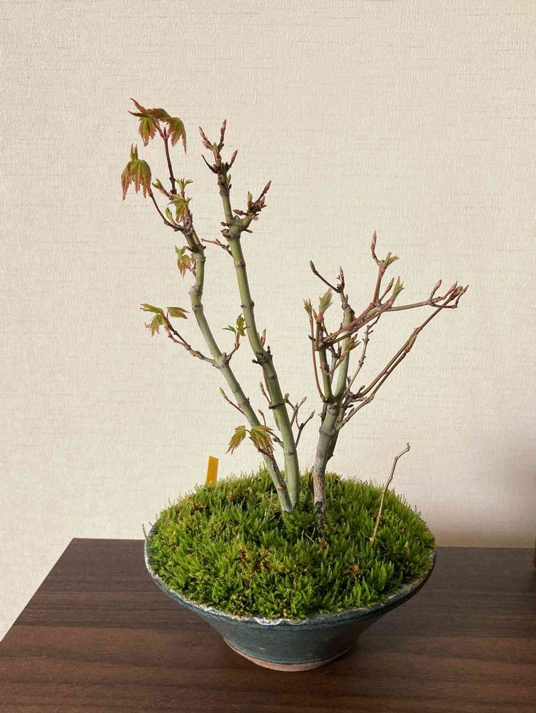 夏に買った山もみじ🍁の盆栽、新芽が出ました。無事に冬を越せ、良かった✨