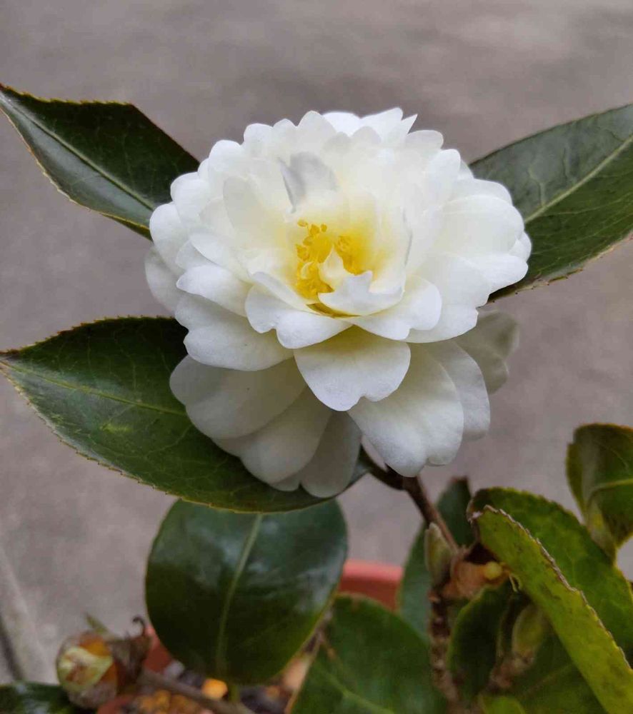 とにかく、開花姿見たい、香り🐽も…の一心。玄関内に入れたり蕾にも水を掛けたりとこの冬の気持ちが咲きました。説明🏷地植えはビミョーな感じで思案中ですが とにかく嬉しい開花、期待の1輪です🌼💝