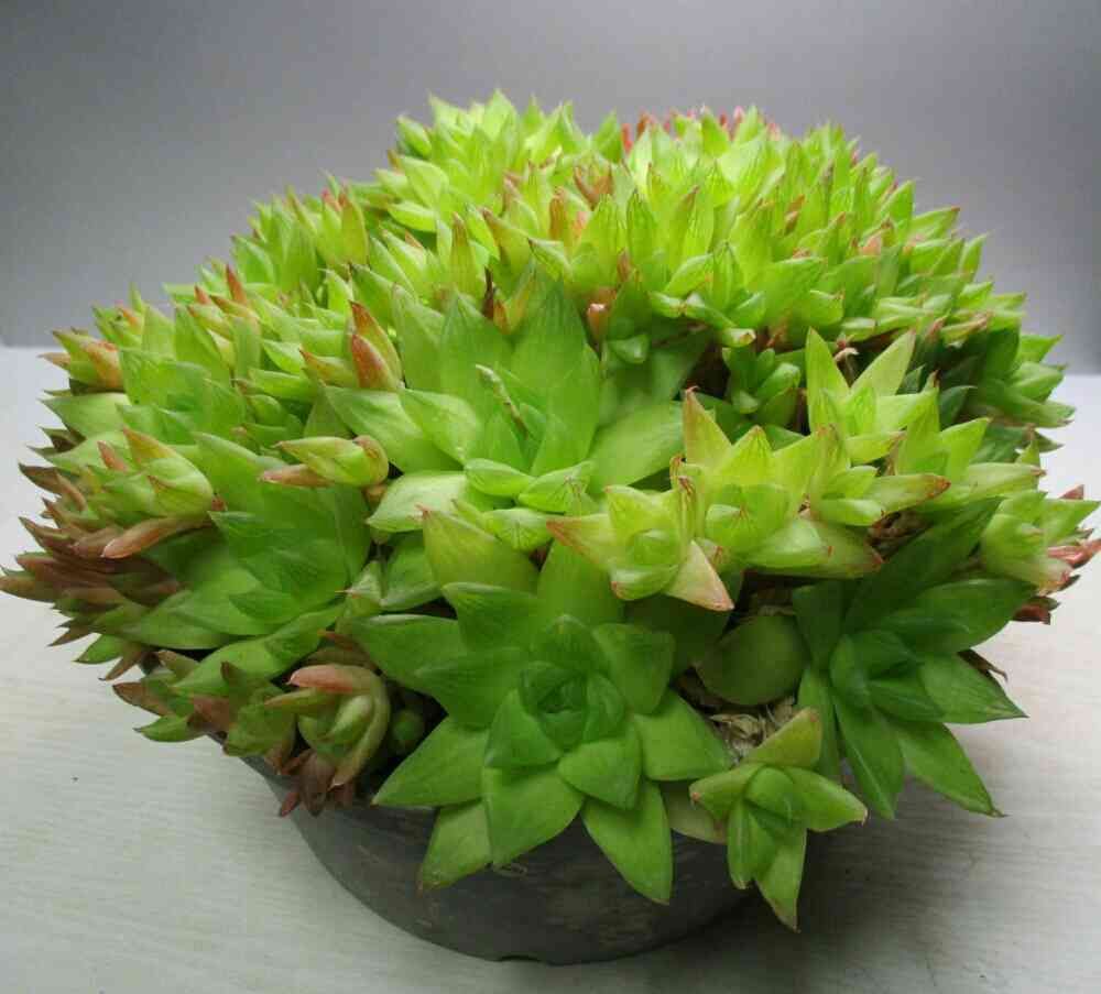 この鉢、ほどよい日射しの居場所だったためか、ほとんどが日焼けもせず、きれいなグリーン葉のまま生長は見事です。