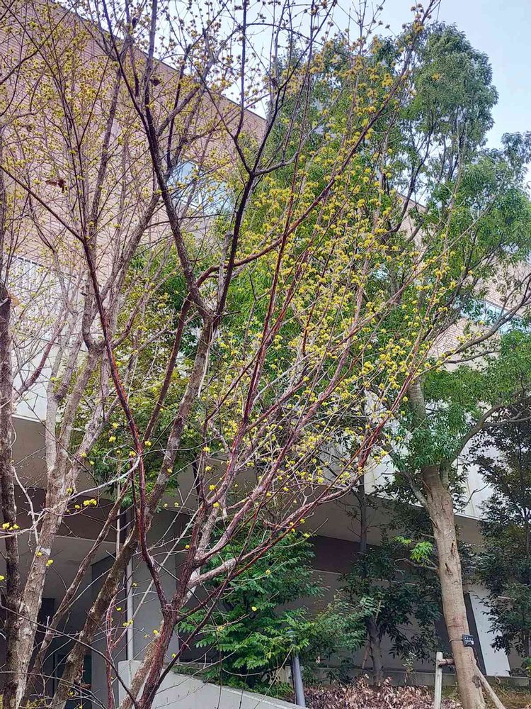 山茱萸(サンシュユ)。日本名の別名ハルコガネバナ(春黄金花)ですね。有難うございました。