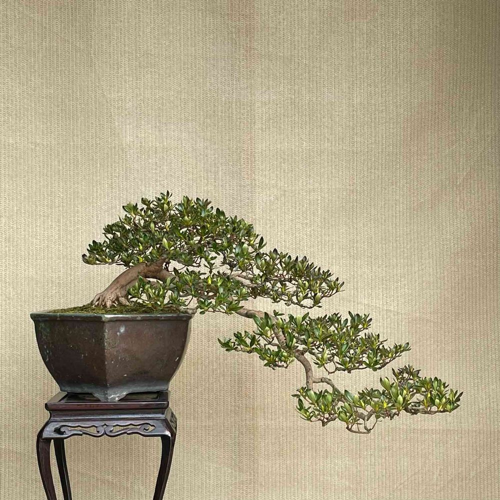 大好きな懸崖樹形ですので、今夜はお抹茶をいただきながら、新しい鉢写りをゆっくり鑑賞することにします😄