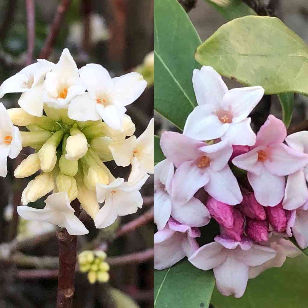 我が家の入り口の両脇に良い香りを放っている紅白の沈丁花です😊😊😊
