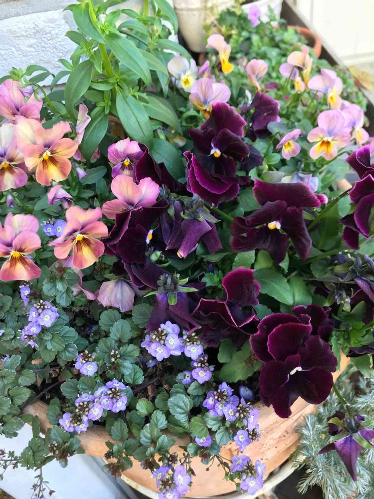 急に気温が上がったせいか、寄せ植えのビオラさんがモリモリ咲いてきました^o^♬💕