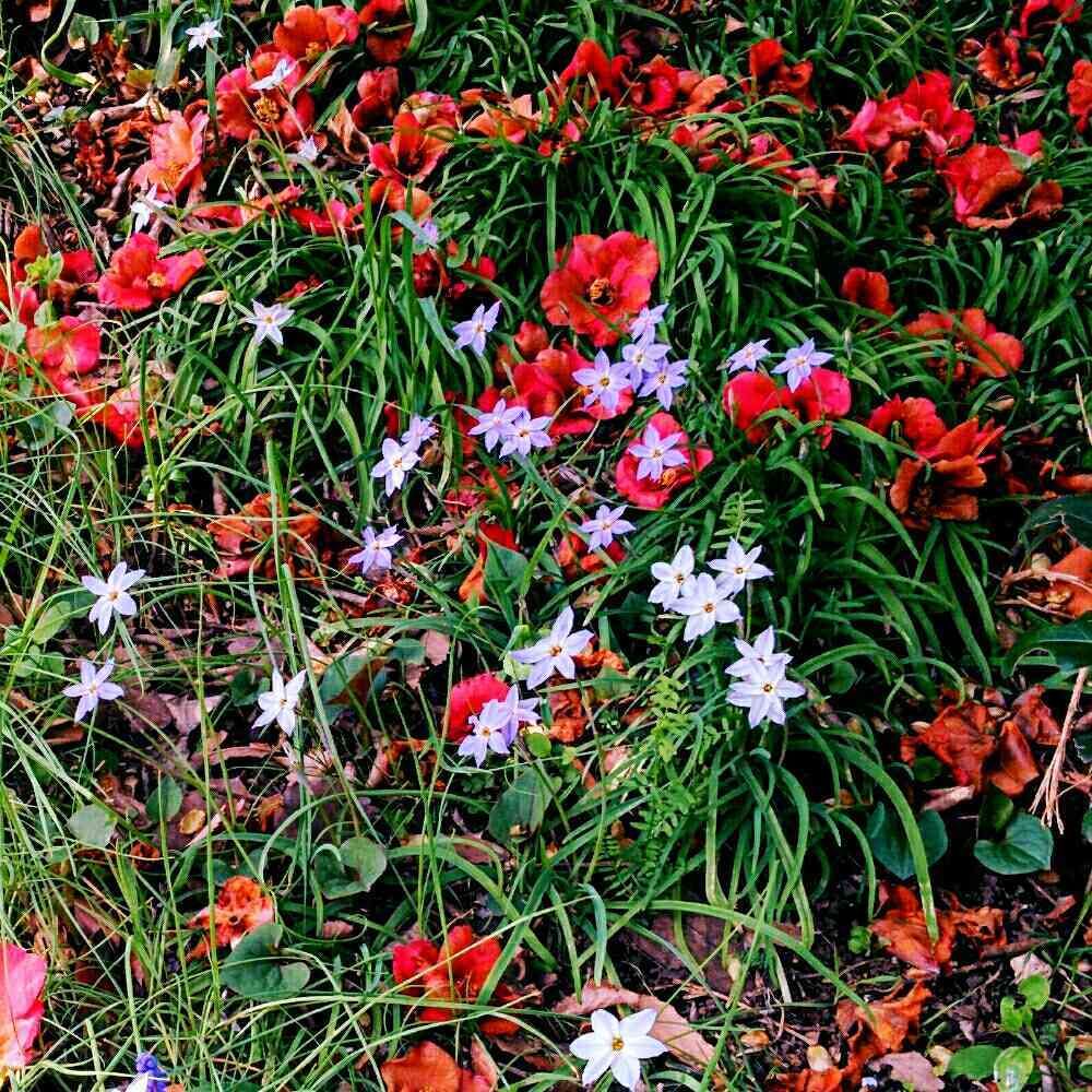 いつも お花をアップにして撮ることが多いのですが、今回は少し引いて撮った庭の風景をまとめました。