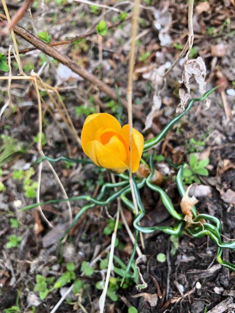 家のクロッカスですが、この葉っぱ一体何でこんな事になっているのでしょう💦