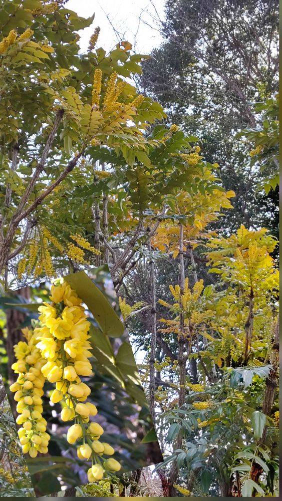 ヒイラギナンテンと台湾原産のマホニア・ロマリフォーリアを掛け合わせた品種らしいですねー 初めて聞く花と言うか木です♪