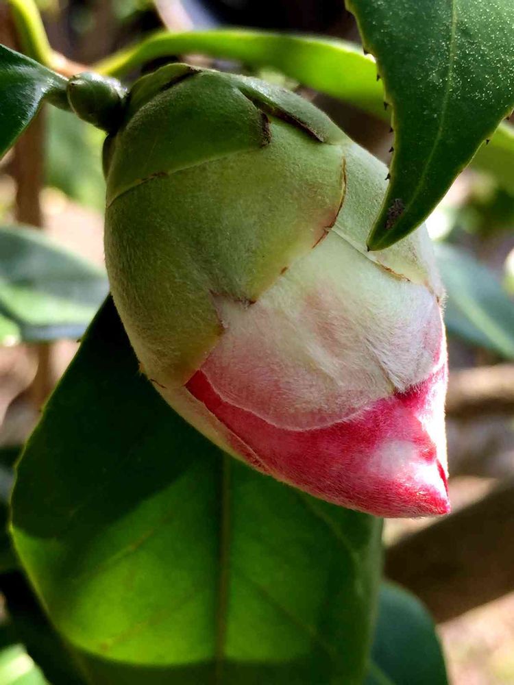 蕾、椿🌸。確か、椿あったはずと思ってたが、花壇の中の木がもりもりで、押しつぶされてました🌳