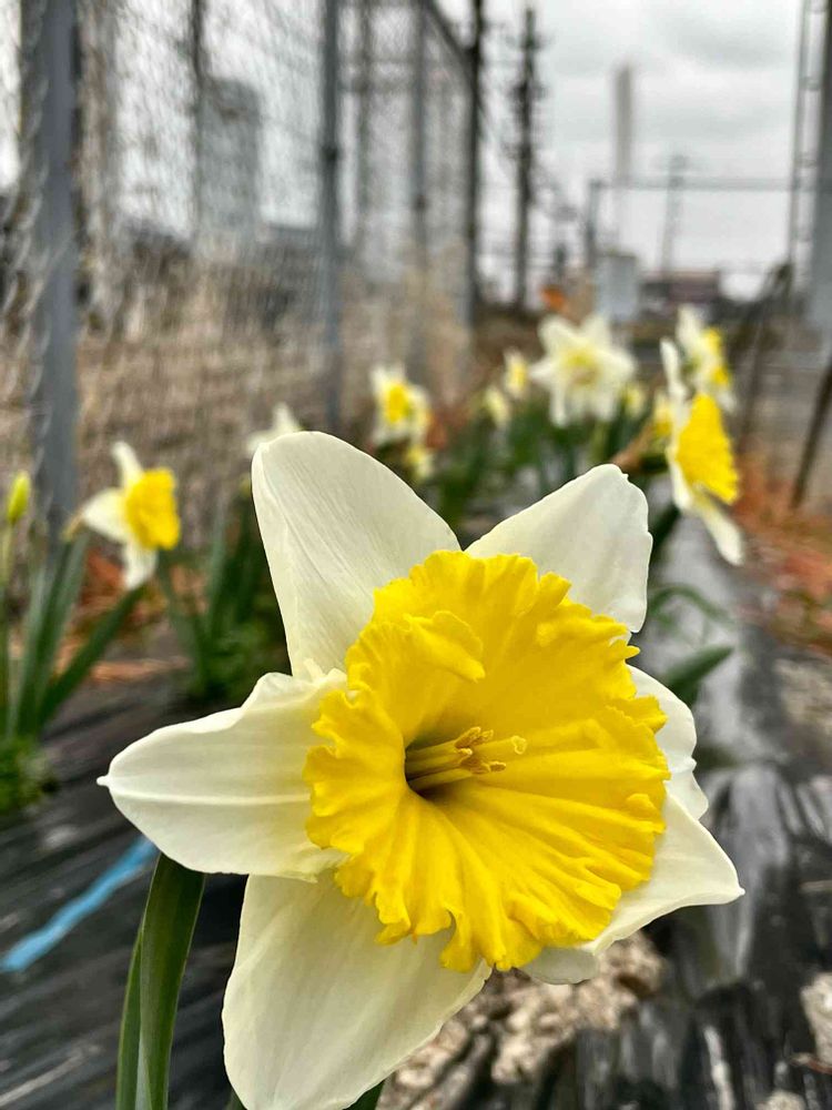 みやま市の西鉄開駅から久留米方面に100mほどの線路沿いに、たくさんのスイセンが植えられていました😙👍