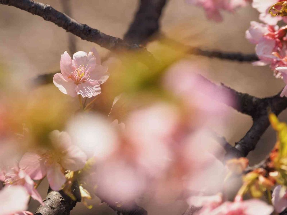 手前ボケの河津桜ステキですね🌿🌸🌿