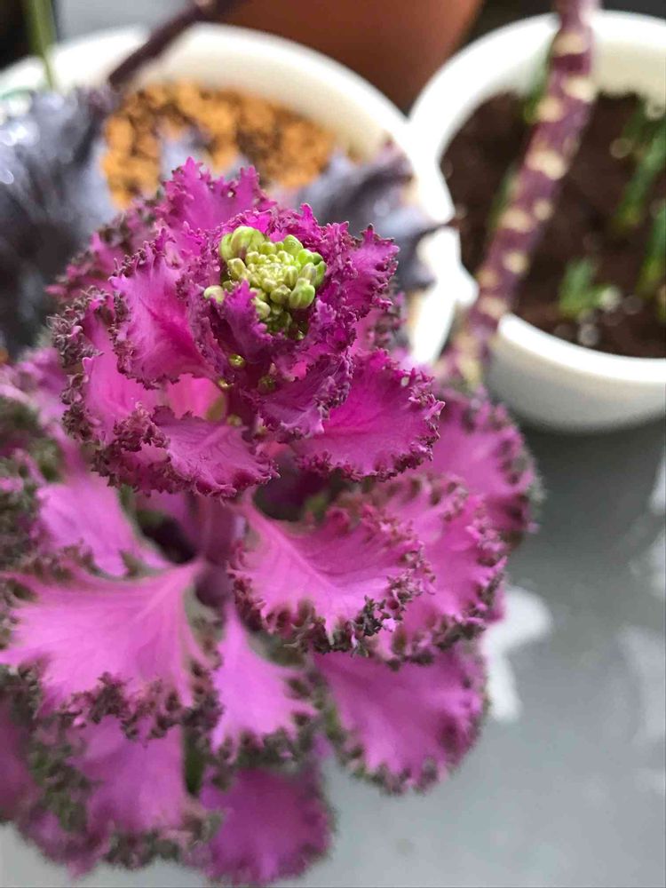 面白い構図で🤳撮れた葉牡丹の蕾