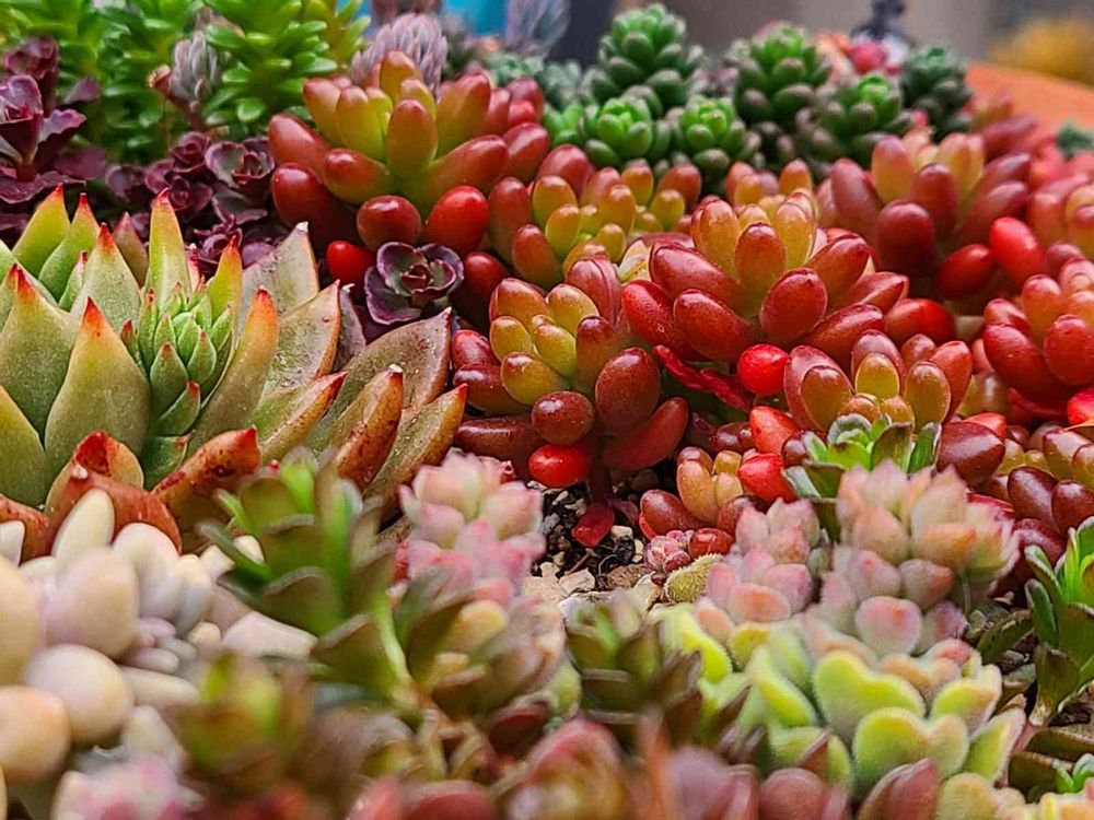 @カエル⭐️さんのセダム畑、いろいろな種類があってツヤツヤ✨で素敵なpicですねっ❣️