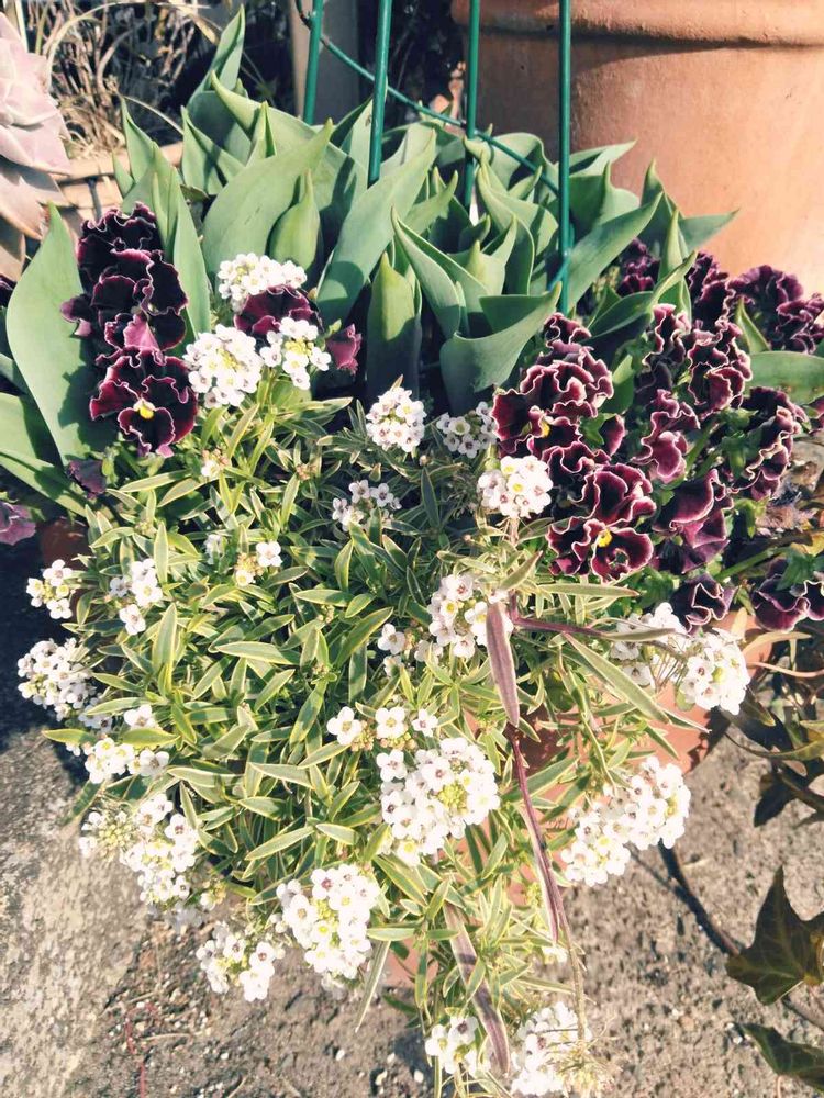 ここ数日の暖かさでチューリップが一気に成長し、やっと寄せ植えのバランスが取れてきました✌️