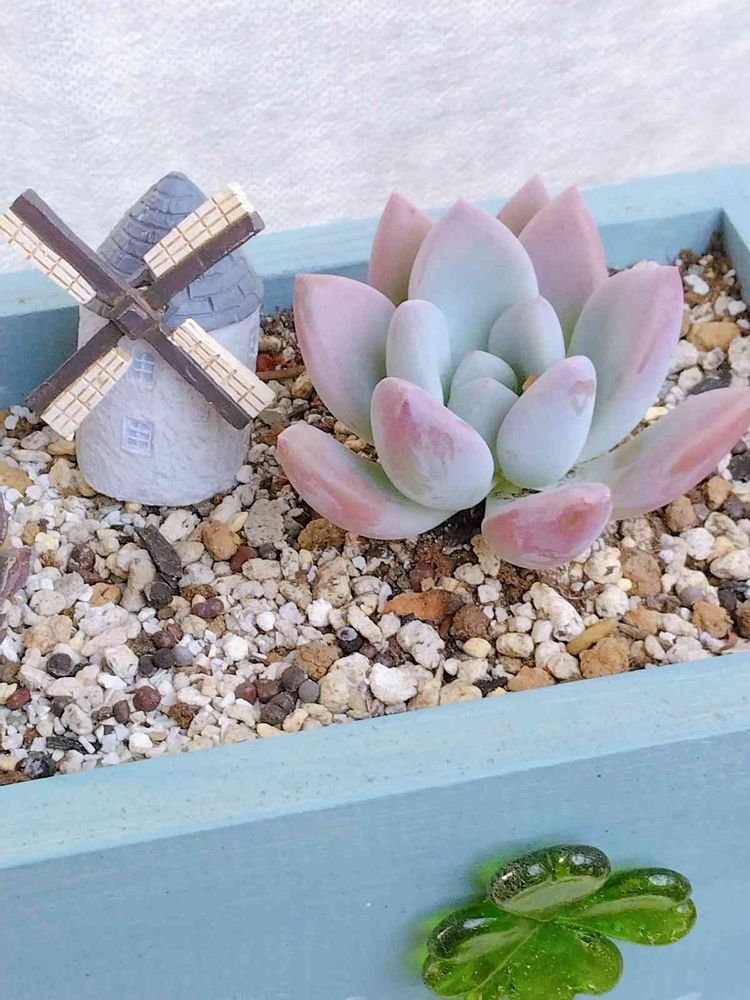 庭や家の中にDIYで作った物と一緒に多肉植物やバラ、寄せ植えをかざって、楽しんでます🌼