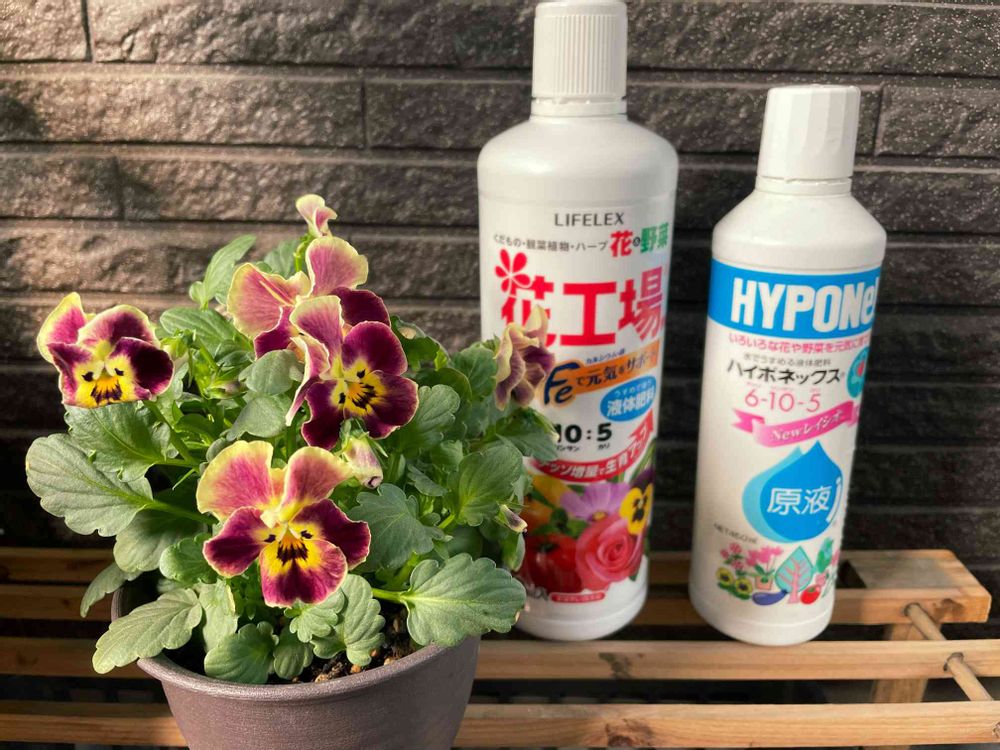 種から育てたお気に入りビオラちゃんと液肥たち(*ˊˋ*)