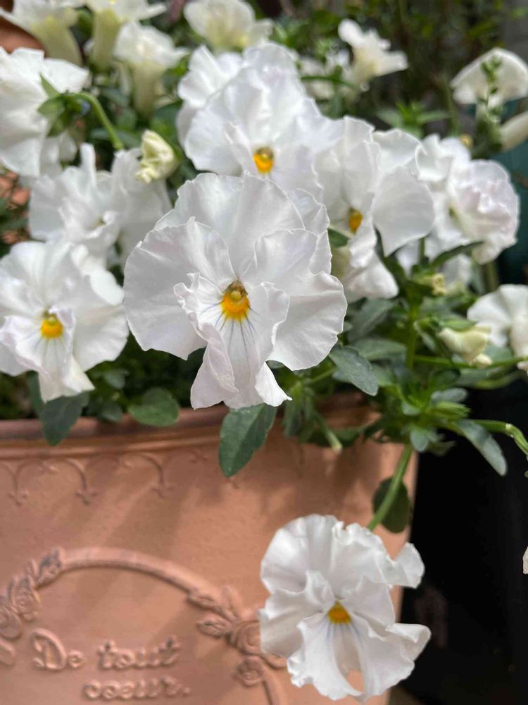 植え付けてしばらくは白地に薄紫色が入ったりしてましたが今はほぼ真っ白です😅