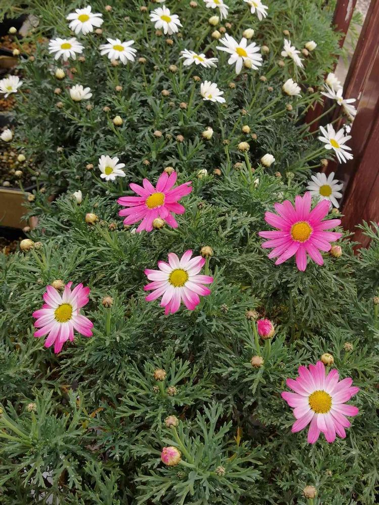 我が家のマーガレットさん達、モリモリ咲き始めてきましたよ。昨年挿し木で大きくなったピンク色も参戦です💕