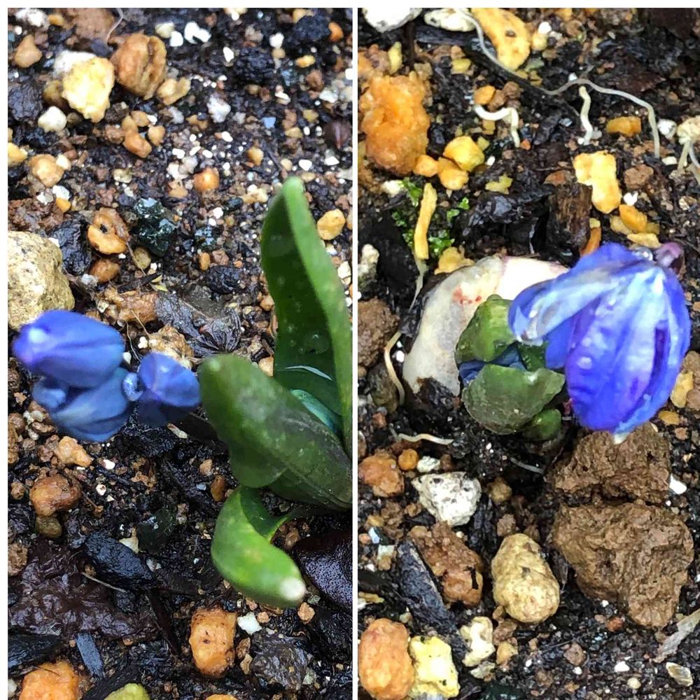 右側は以前にも投稿したのですがなかなか、咲きません。左側は暖かさに誘われて顔を見せてくれました〜🌱