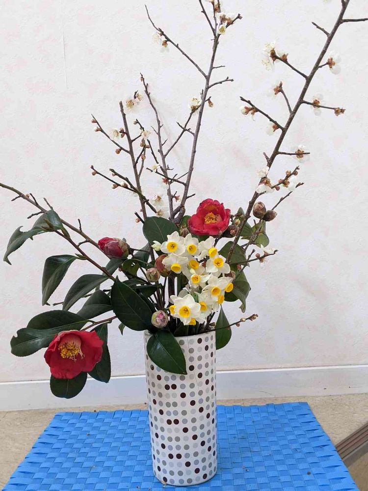 近所に咲いていた梅 椿 スイセンです🙋🥰🥰