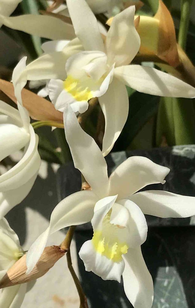 真っ白でクリーム色が真ん中にちょっとある、お気に入りの蘭です😊