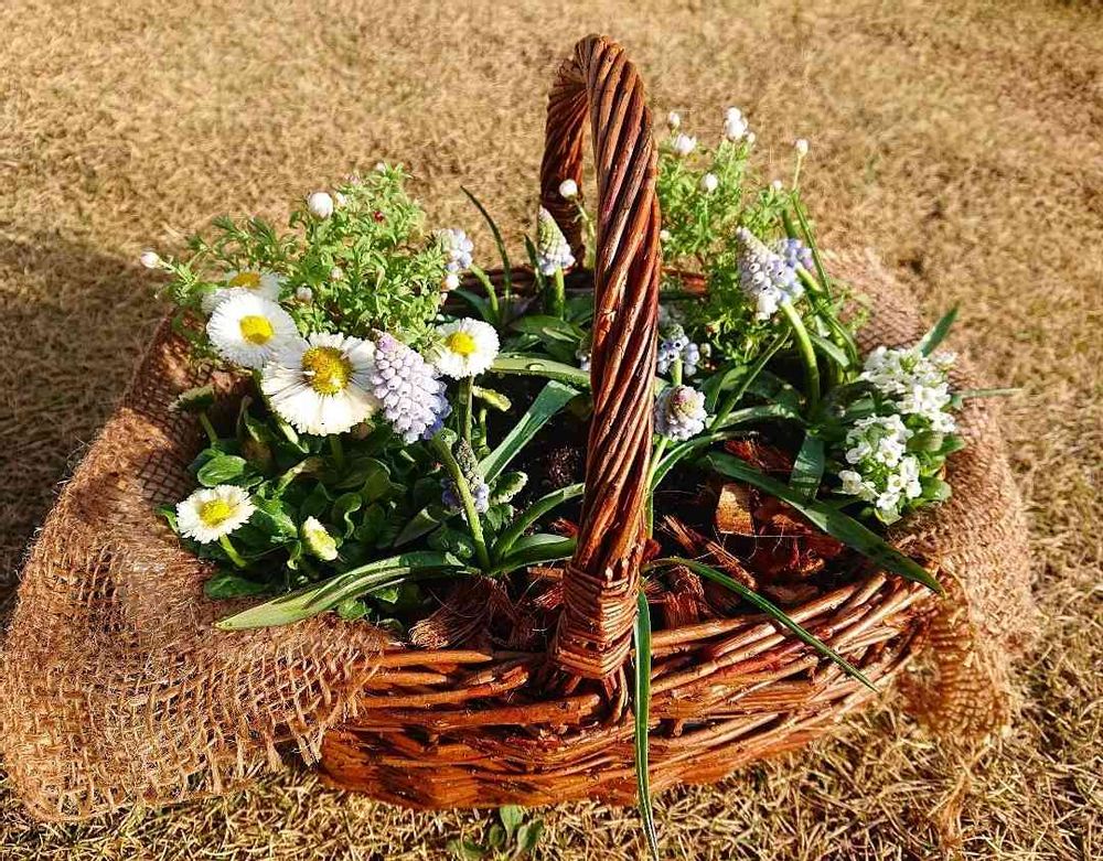 カゴにムスカリの寄せ植えをどうしてもしたくて…。