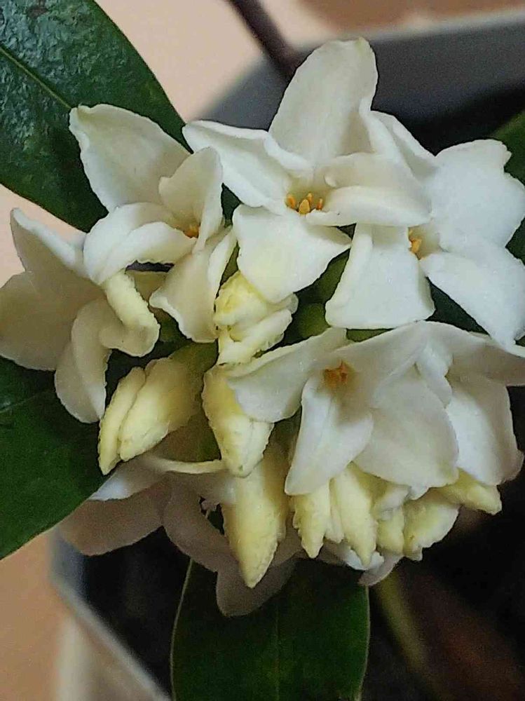 昨年お迎えした白の沈丁花が今日の昼間の暖かさで咲きました🥰