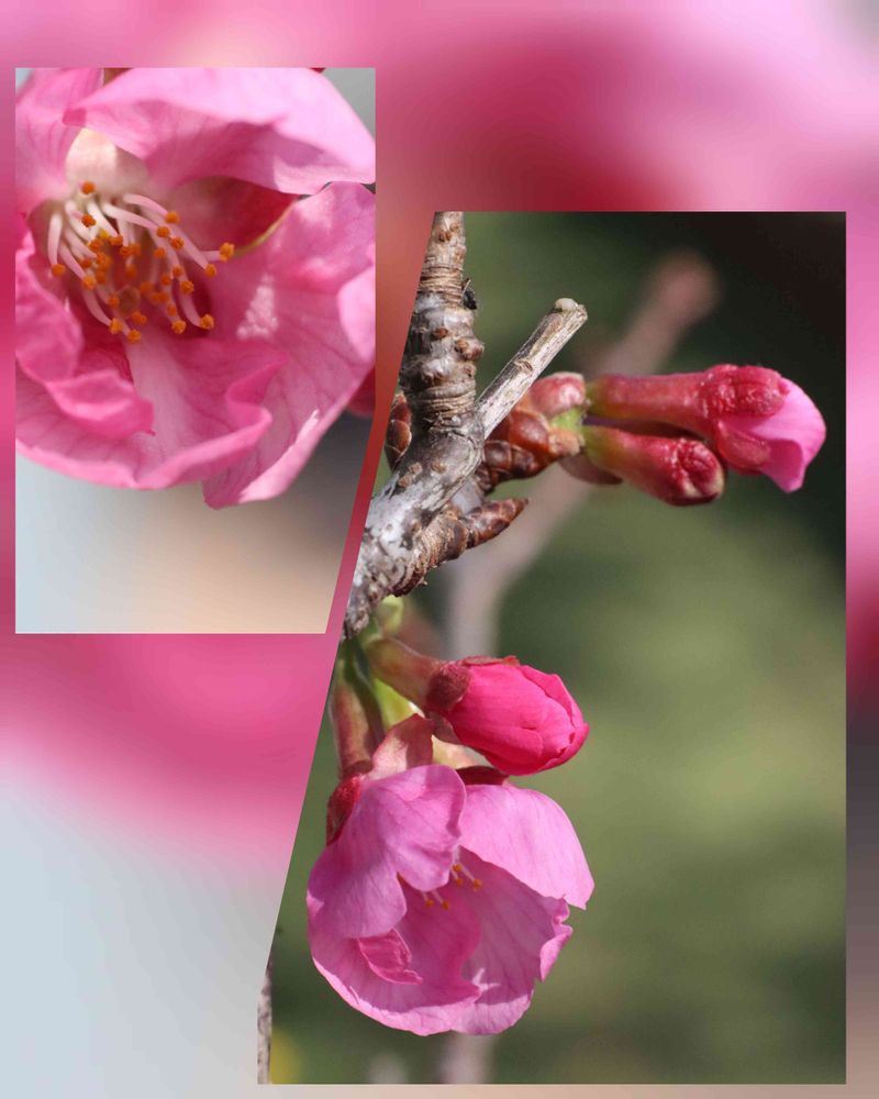 、季節は正直ですね、我が家の河津桜は4年前にお花見に川沿いのお店で買って来たのですが一年で枯らせてしまいました…新芽も上がって来ていたのに!買主の責任です( ; ; )今同じくらいピンクの桃が咲き始めました♪