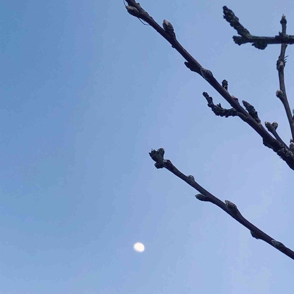 空と月と…花桃の小さな芽♡