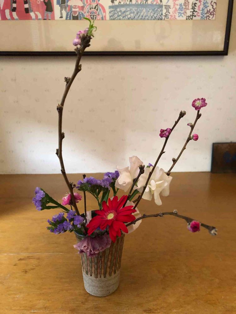 桃の花と一緒に スイトピー ガーベラ スターチスも花瓶に 入れるのって 素敵ね💖