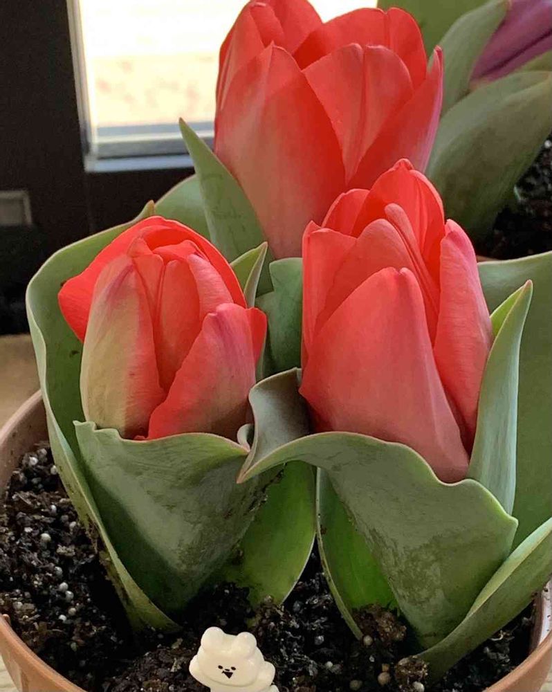 かわいいチューリップさん🌷茎の短いチューリップさん🌷安定感ばっちり🌷強い風が吹いてもヘッチャラ🌷✌️