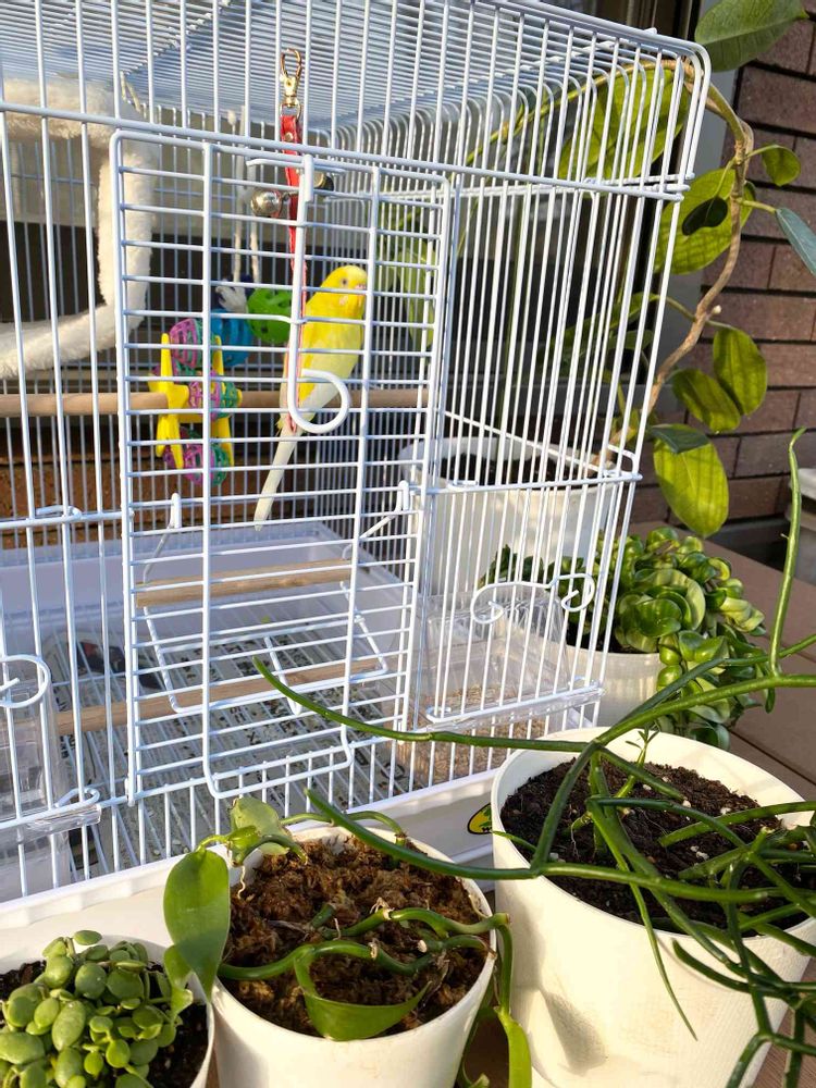 最初は固まりますが、しばらくほっとくとご機嫌でさえずってました🎼.•*¨*•.¸¸🎶