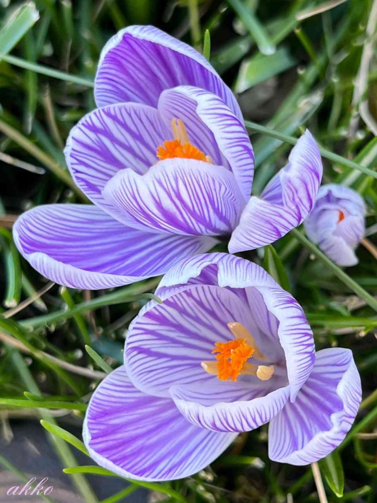 我が家にはこのストライプのクロッカスが咲いていないので、とても爽やかで、