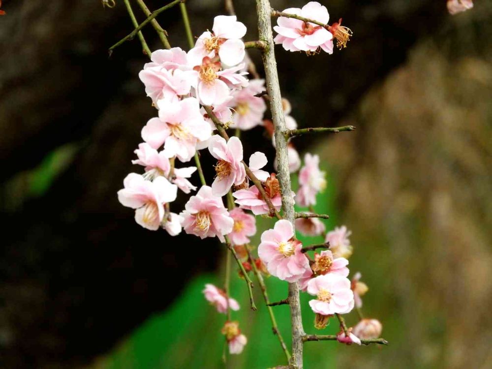 散策中に、仁保川沿いの枝垂れ紅梅の花です。