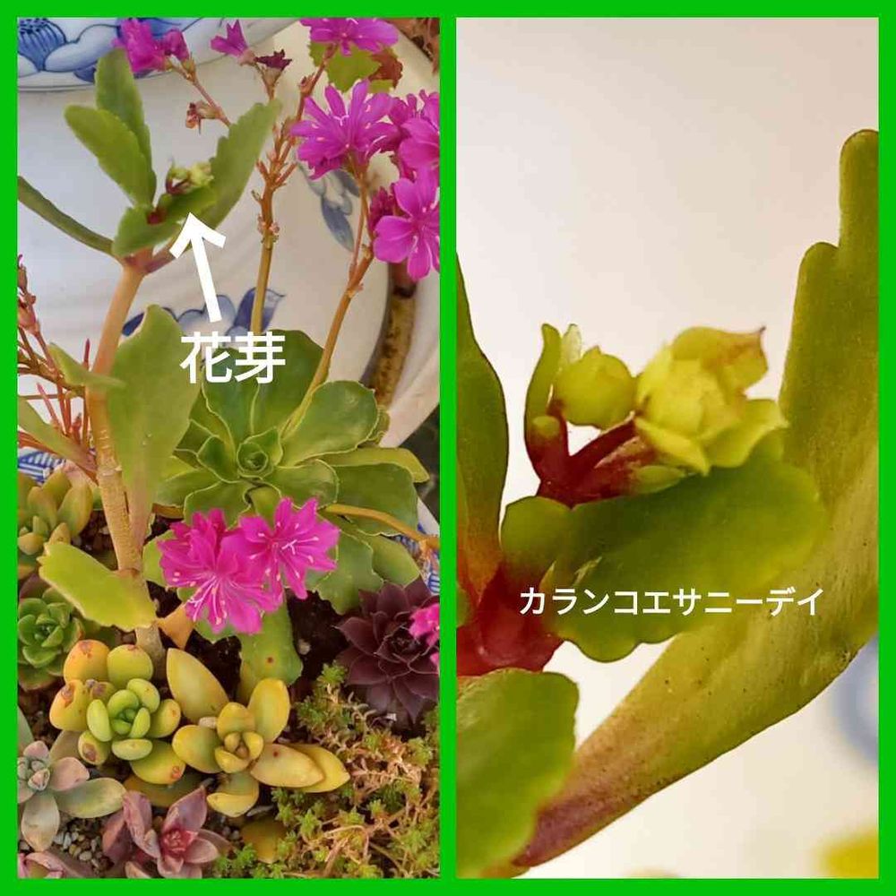 去年カランコエサニーデイを挿し木したのを寄せ植えに植えたのに花芽が付いてる