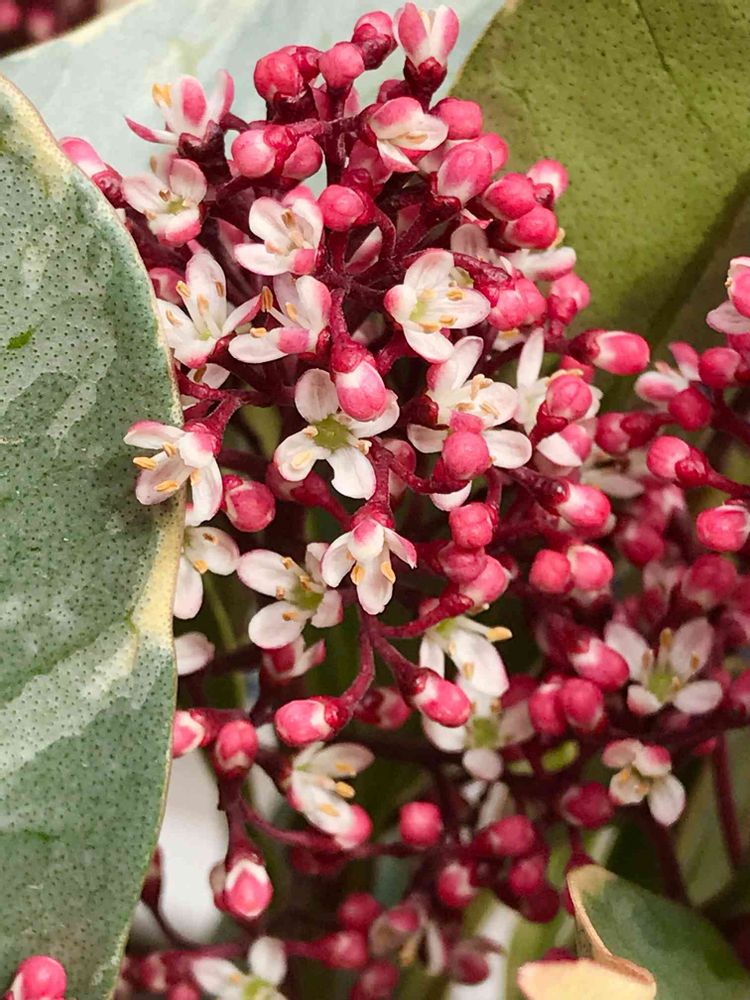 ご近所の花友から、スキミアのホワイトを株分けしたいから