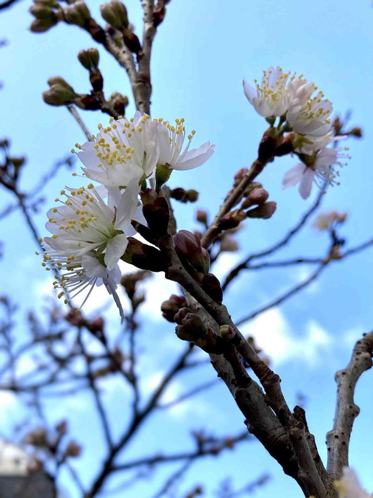 梅が散り始めるやいなや 桜(んぼ)の花が咲き始めました。庭には梅、スイセン、桜(んぼ)の香りが漂っています。